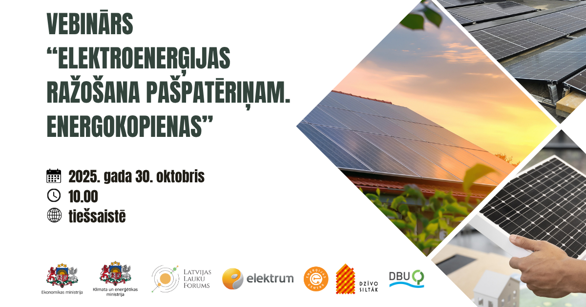 Aicinām uz informatīvu vebināru – “Elektroenerģijas ražošana pašpatēriņam. Energokopienas”