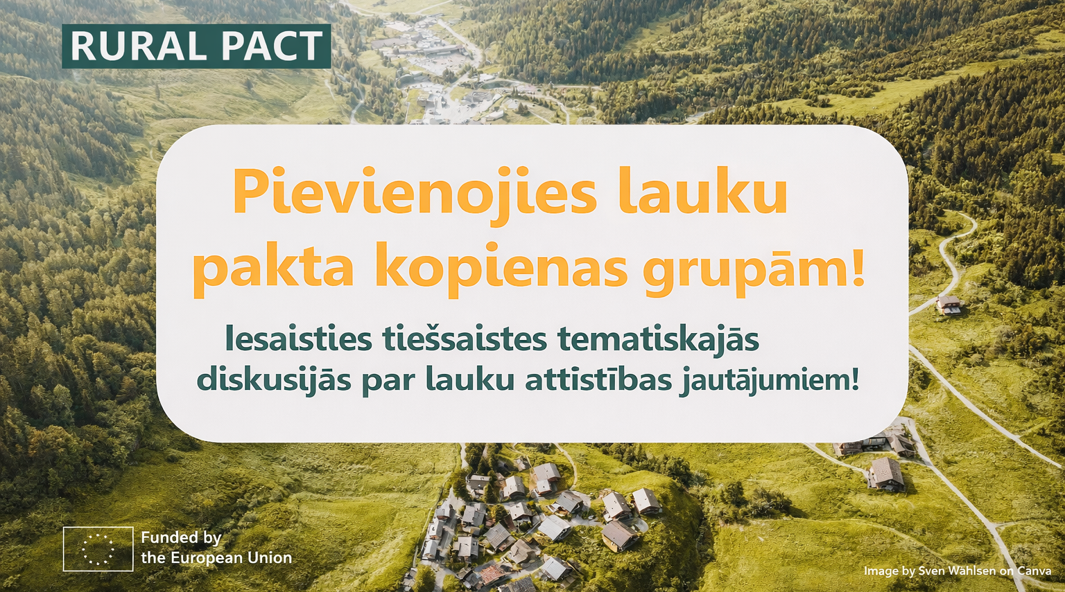 Aicinām pievienoties Rural Pact tematiskajām kopienas grupām – tiešsaistes platformām, kurās satiekas iedzīvotāji, pilsoniskās sabiedrības organizācijas, pētnieki, publiskās pārvaldes pārstāvji un uzņēmēji no dažādām Eiropas valstīm.